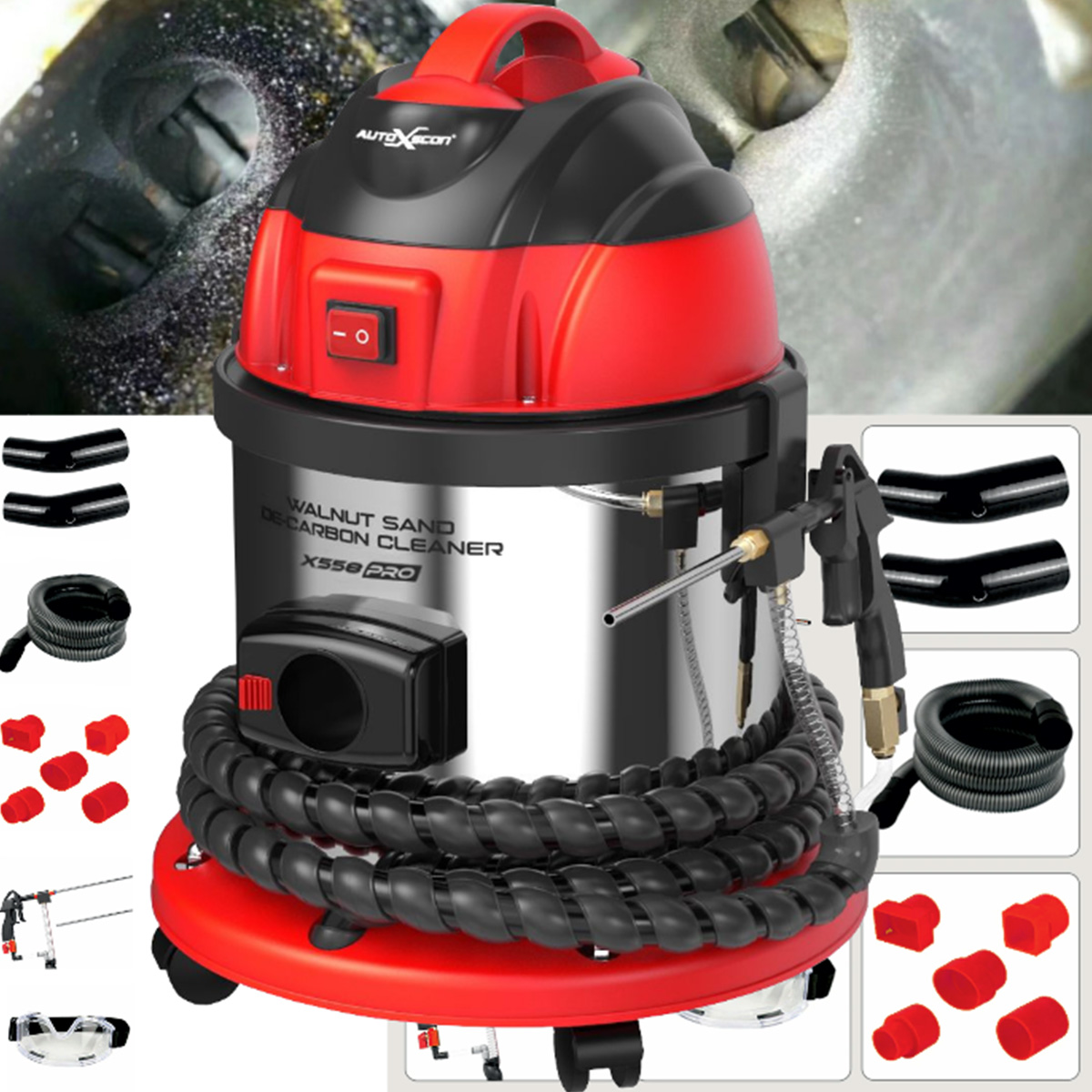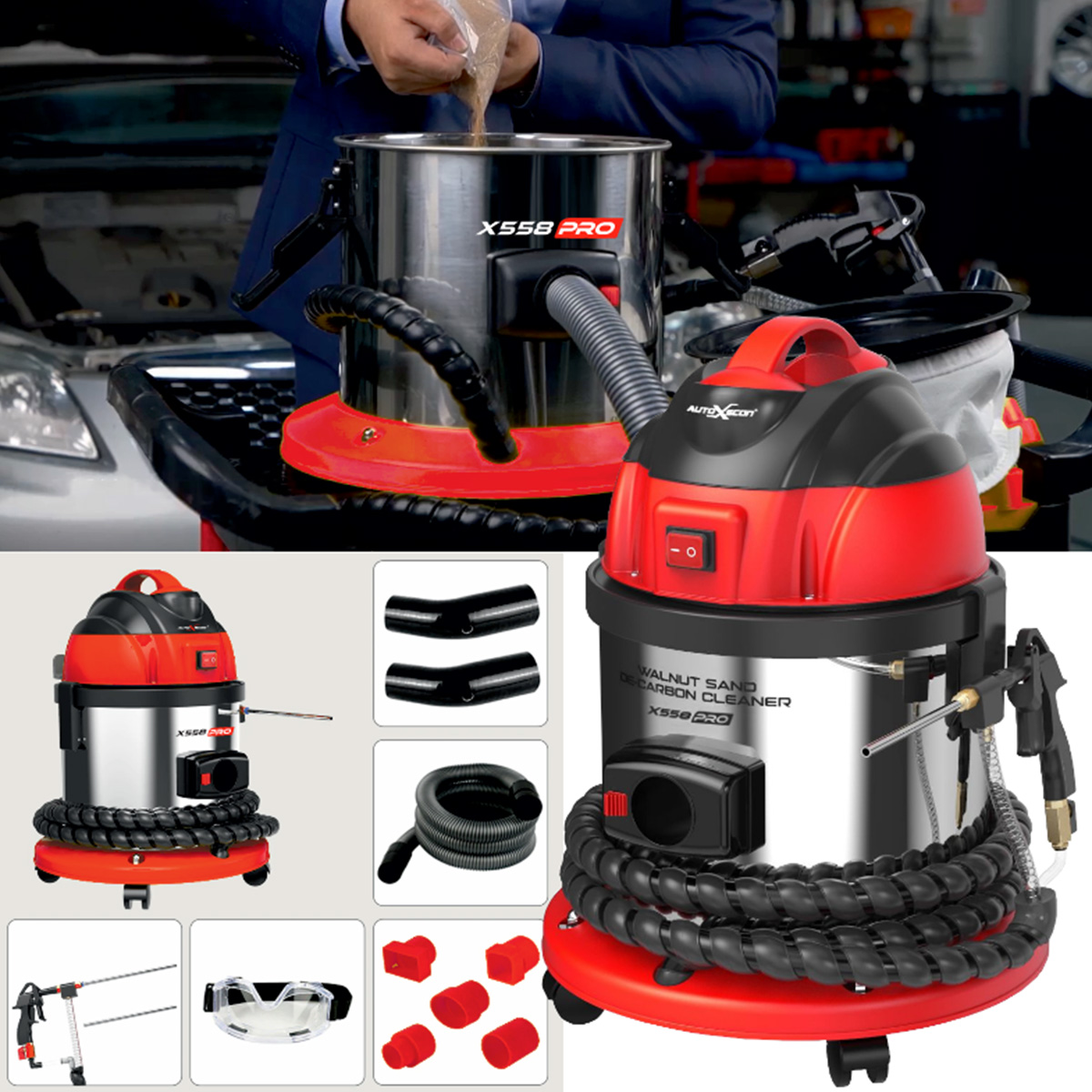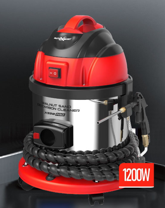 Profesjonalny dekarbonizator proszkiem orzechowym. X558 PRO jest to maszyna do dekarbonizacji proszkiem orzechowym.