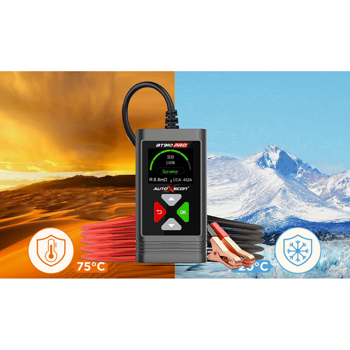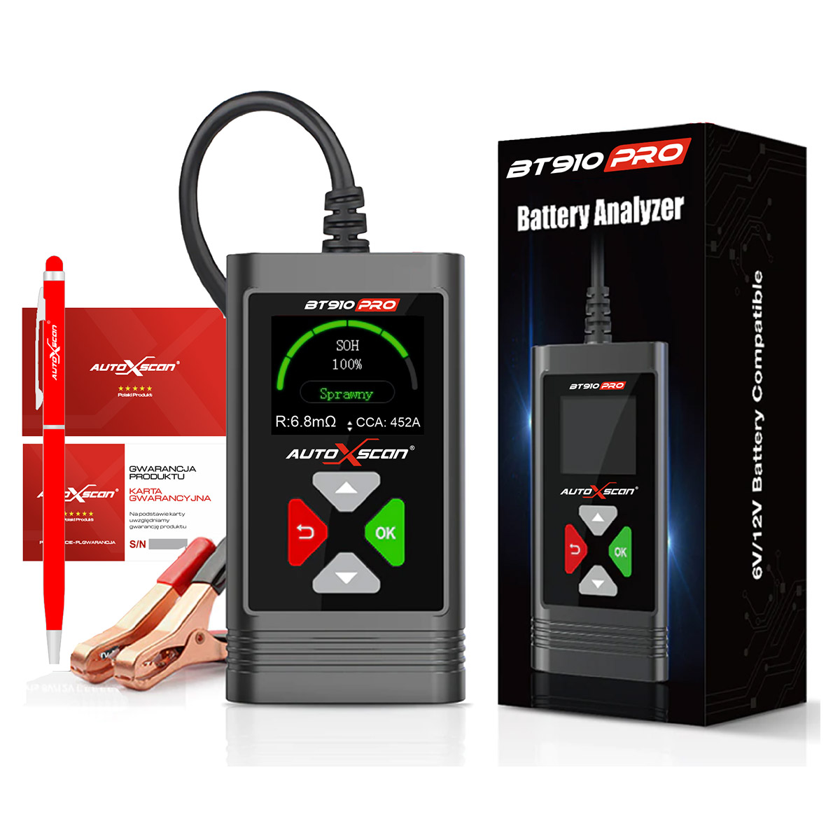 Bardzo wysoki zakres oraz czułość testów, test akumulatorów napięcia 6V i 12V, oraz bardzo szeroki zakres pomiarowy prądu od 2Ah do 220Ah !!! Model autoXscan BT910PRO Tester pracuje w języku Polskim!! Sprzęt z Wyłącznej Autoryzowanej Polskiej Dystrybucji autoXscan !