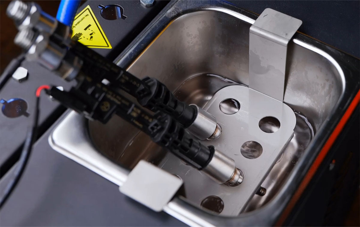 Wysyła sygnały do wtryskiwaczy poprzez linię sygnału impulsowego, wykorzystując płyn czyszczący z wibracjami ultradźwiękowymi, aby całkowicie usunąć węgiel i zanieczyszczenia wewnątrz wtryskiwaczy. Czyść wiele wtryskiwaczy w tym samym czasie.