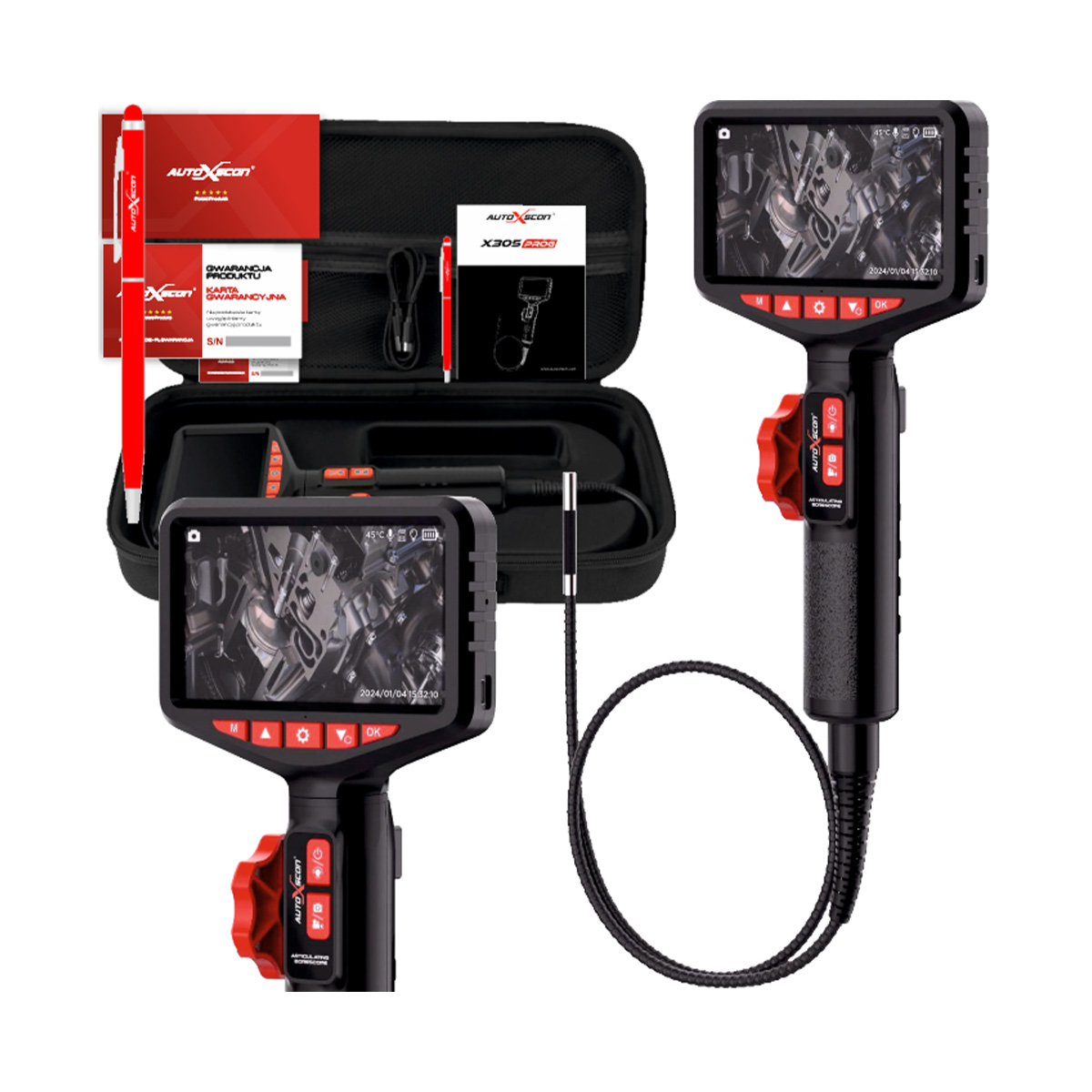 Endoskop, Kamera Inspekcyjna X305 PRO, LCD 5″, Sonda 6,35mm Skrętna.
