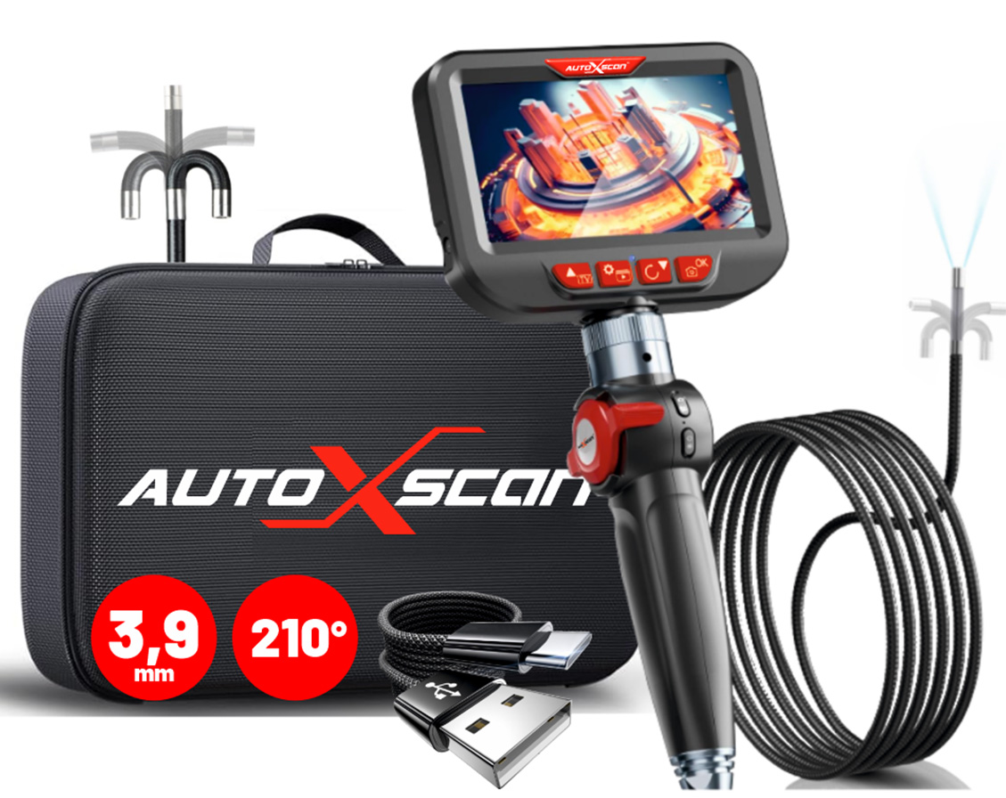 Kamera inspekcyjna, endoskop LCD 4,3″, Sondą 3,9mm Skrętną !!! Dwukierunkowa 210° soczewka Jeden kliknij zdjęcie i wideo Sterowanie światłem soczewki 2600mAh bateria litowa 4,3 cal wyświetlacz HD Wodoodporność IPG7 Szerokie zastosowanie