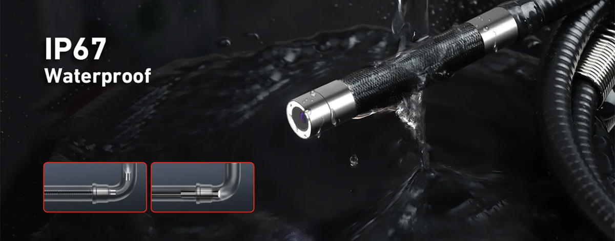 Wodoodporny stopień kamery to IP67, z wodoodporną odpornością na działanie andoil, która może pracować w mokrych rurach.